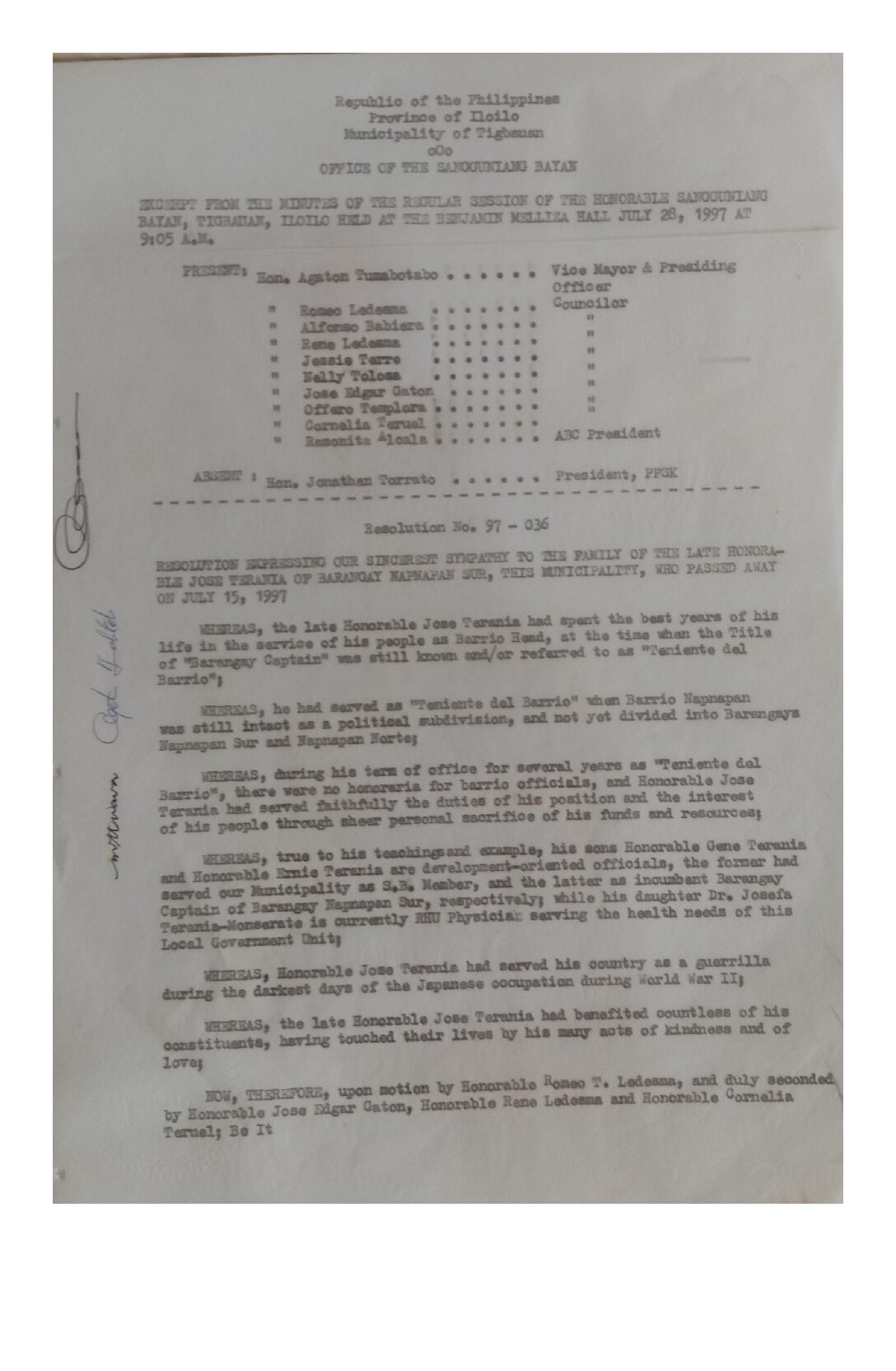 Resolution No. 97-036
