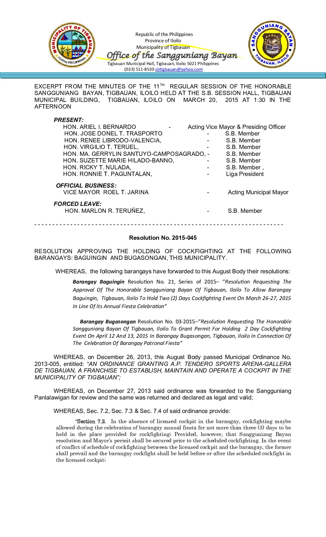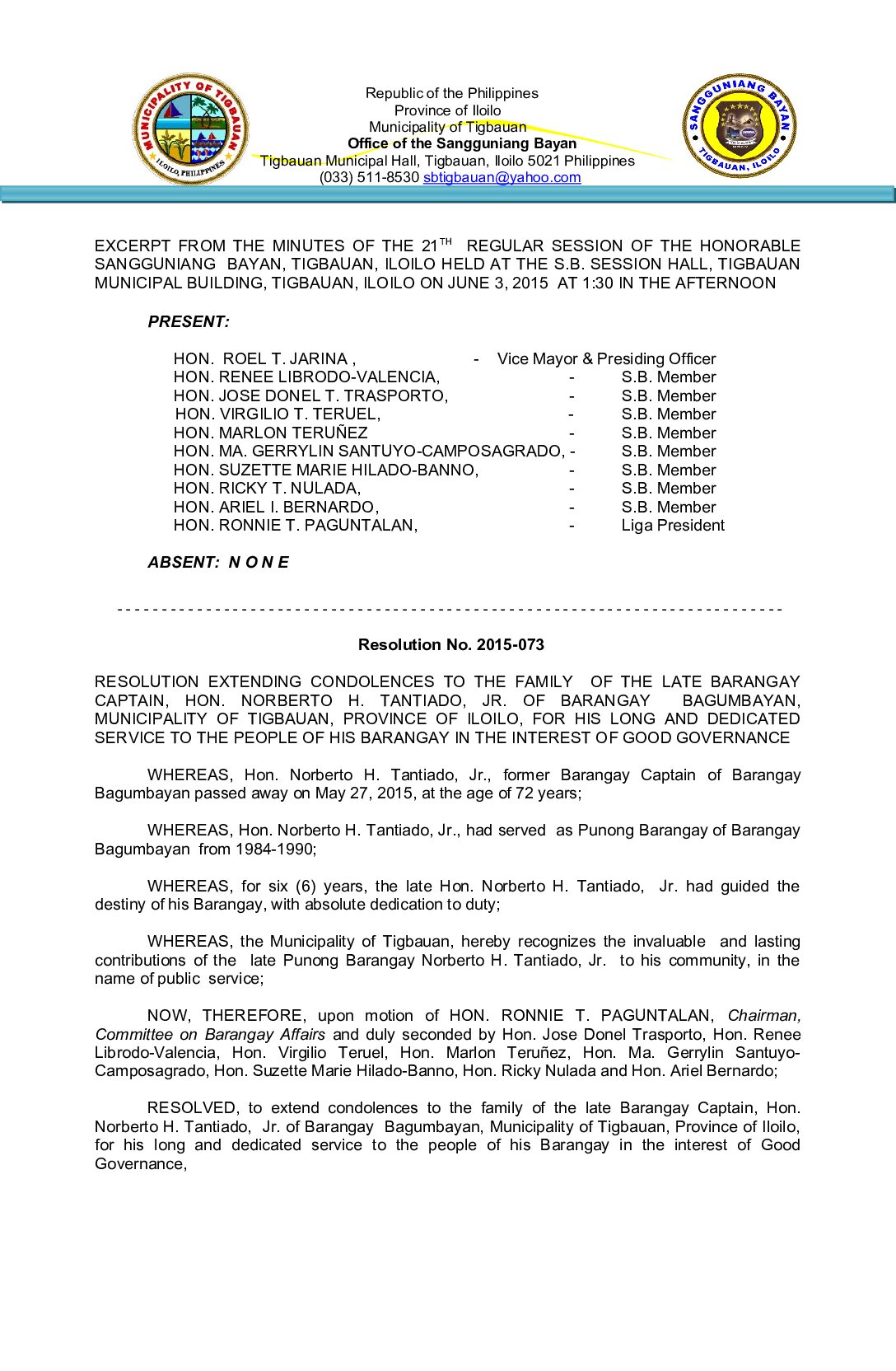 Resolution No. 2015-073