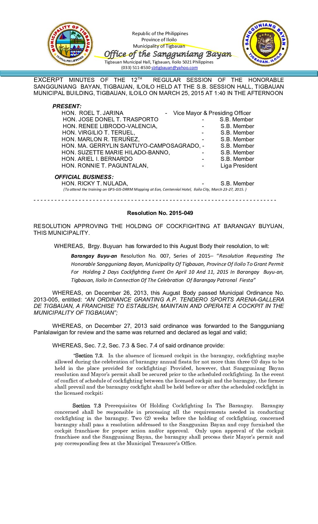 Resolution No. 2015-049