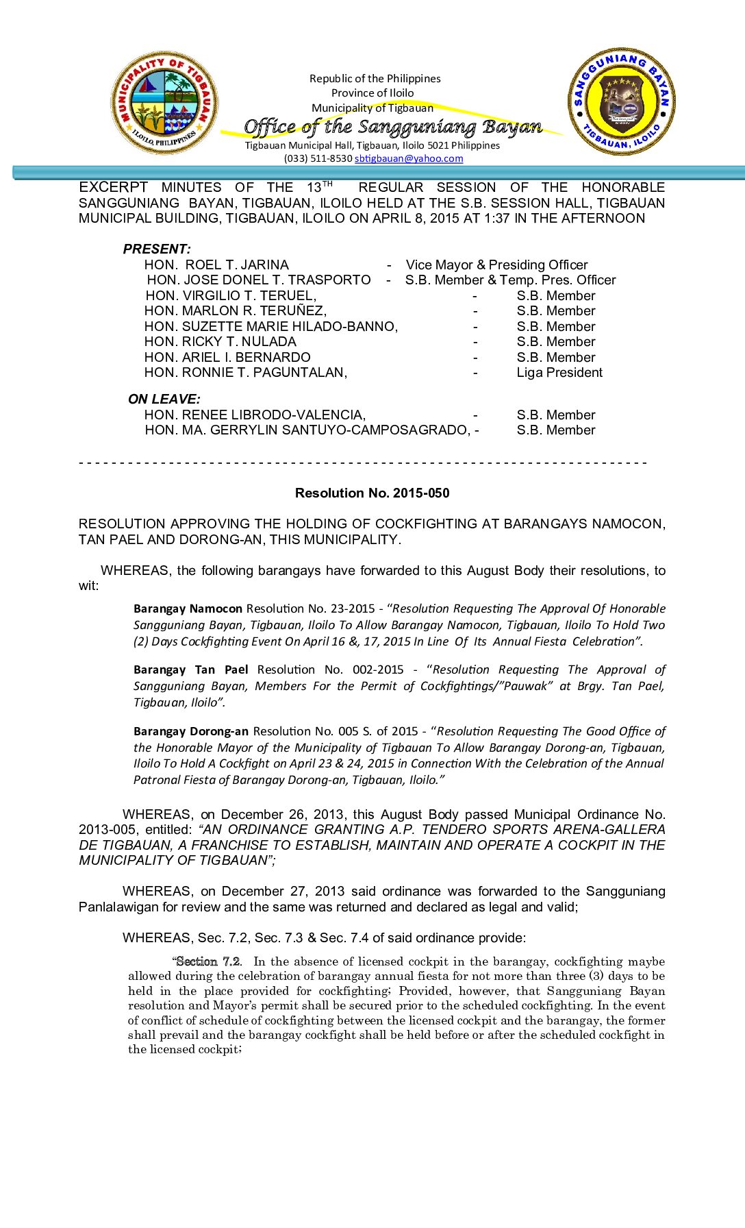 Resolution No. 2015-050