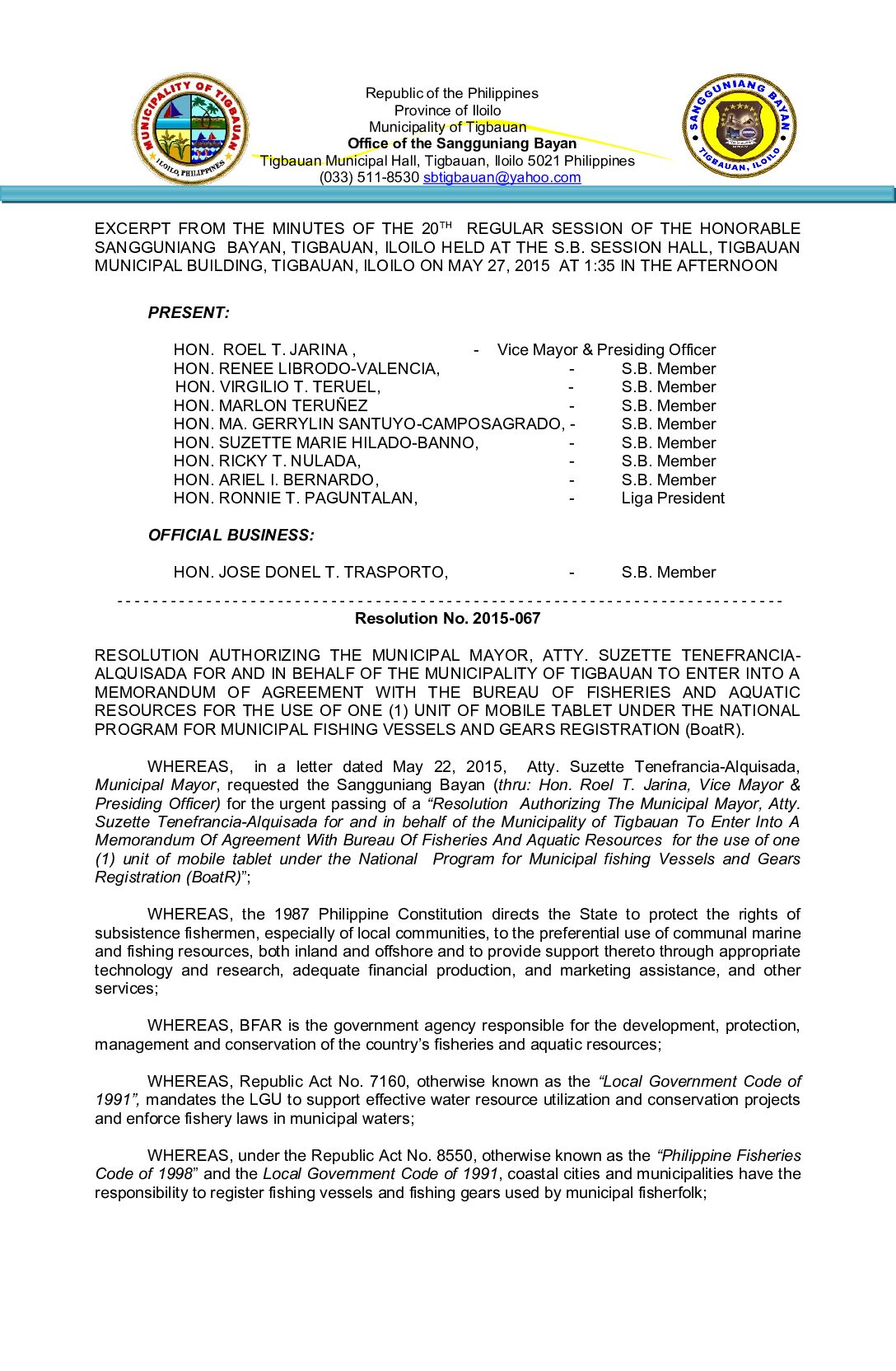 Resolution No. 2015-067