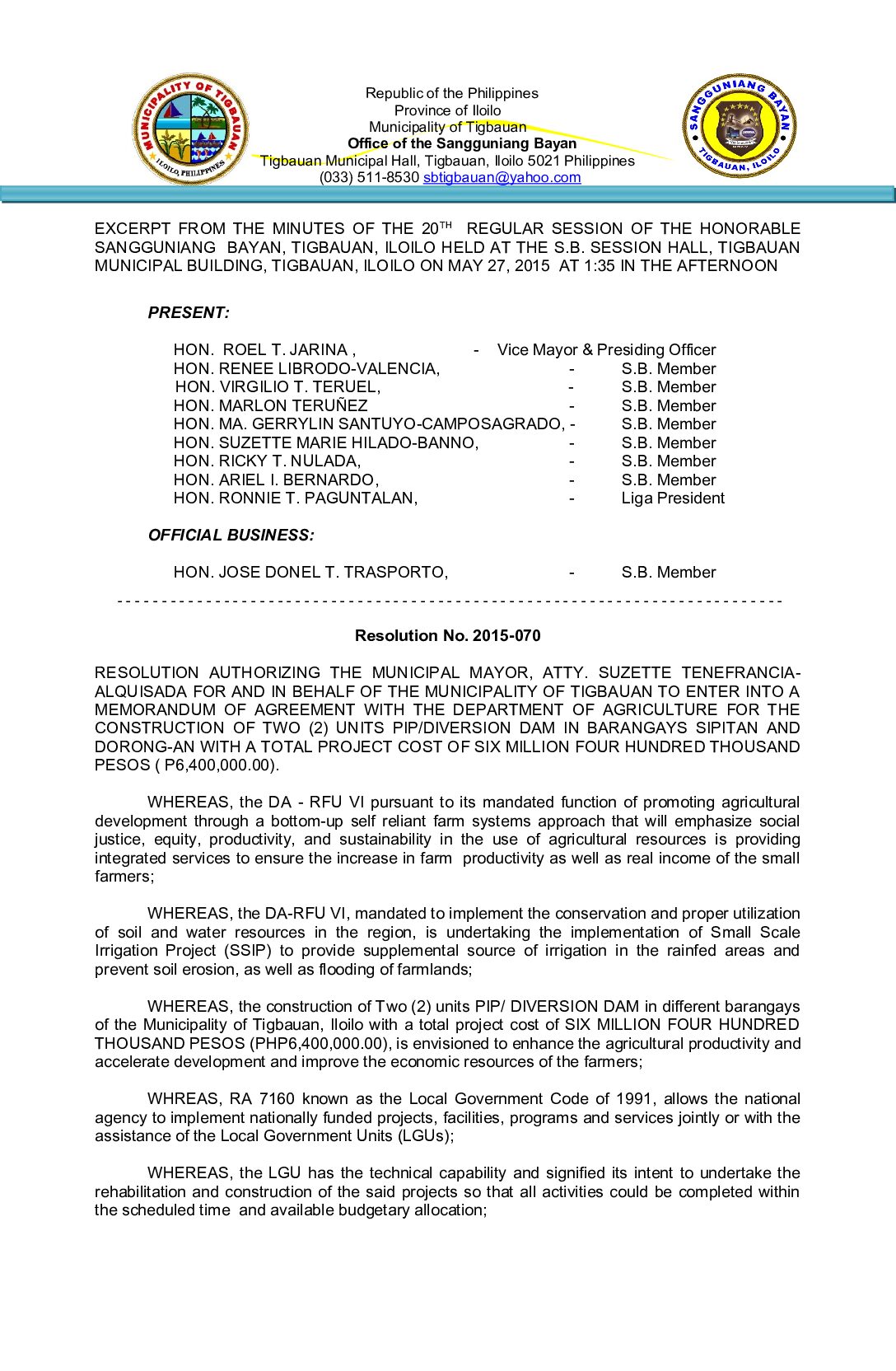 Resolution No. 2015-070