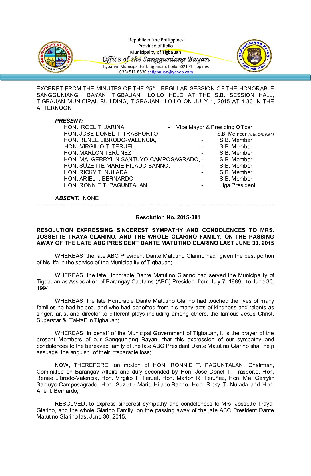 Resolution No. 2015-081